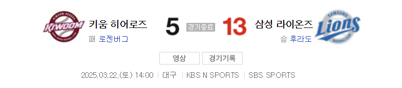 삼성 라이온즈가 키움 히어로즈를 상대로 13-5 대승을 거두며 시즌을 기분 좋게 출발했습니다.