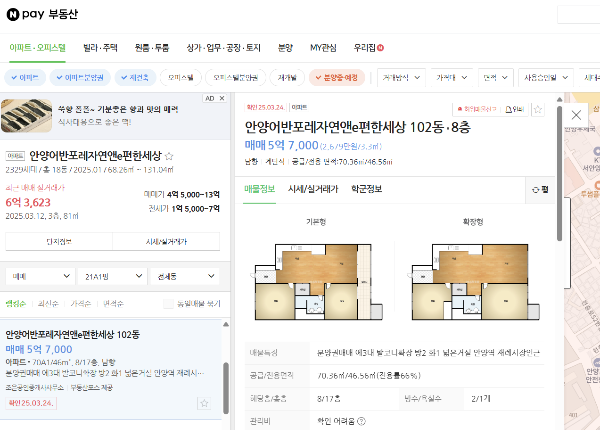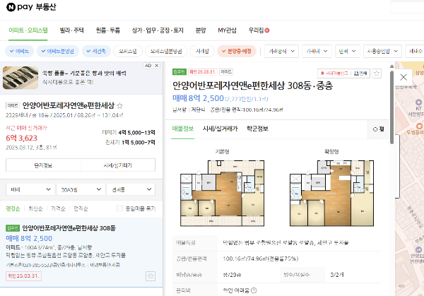 - 네이버에서 확인한 구조와 현재 매물 가격